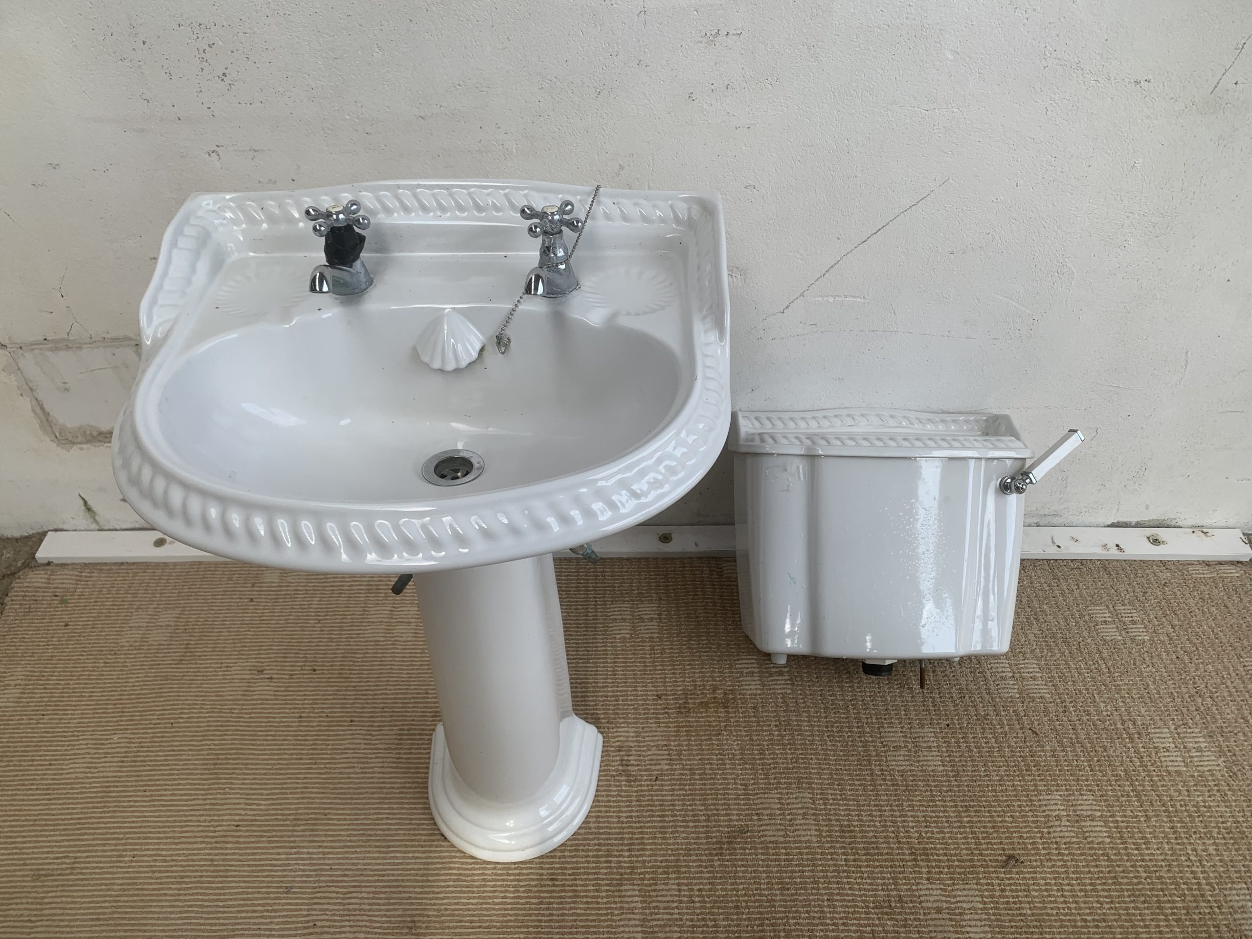 Ceramic Bathroom Sink & Matching Toilet Cistern